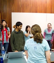 UA President Vrajesh Y. Modi ’11 is serenaded by the MIT Muses prior to the Valentine’s Day UA Senate meeting. The Logarhythms and the Muses both sell Valentine’s Day serenades each year.