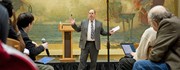 Associate Provost Martin A. Schmidt PhD ’88 speaks to Walker Memorial groups about the process for deciding whether Music and Theatre Arts will move into the building, and how students will be affected.