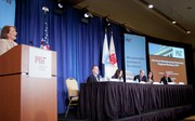 (Left to right) Karen Mills, Guy Broadbent, Jill Becker, Michael Casper, Joanna Dowling, and William Emhiser speak on the Advanced Manufacturing Success Stories Panel. On Monday, Nov. 28, MIT hosted the White House’s Advanced Manufacturing Partnership Regional Meeting to discuss ways to boost advanced manufacturing in the U.S.