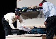 Reuben M. Aronson ’12 demonstrates the difference between “Exhale” and a normal suitcase. Exhale is a compact, vacuum-powered product that promises to fit more luggage than a standard suitcase.