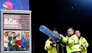Hundreds of Occupy Boston protesters amass on Atlantic Avenue in front of Dewey Square late Thursday night. Several protesters held up a banner that read, “You can’t evict an idea: we will not be silent.” They were also chanting phrases like “take the streets,” “we are the 99 percent,” and “no, no, we won’t go.”