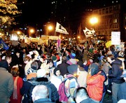 Upwards of 1,500 protesters gather in Dewey Square Thursday night, dancing, chanting, and blocking traffic.