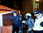 Protesters move some of their camp onto the street, though police began to clear it out about an hour later.