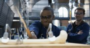 Elaina K. Present ’12 of Team Green shows off “Walker Prime,” a convertible walker that can also be used as a cane.