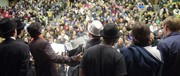 Participants gather at the Mystery Hunt Wrap-Up in 26-100 on Sunday evening. The Hunt ended when the coin was found in little Kresge at 10:27 p.m. on Saturday. Onstage, from left to right: Josh Ain, C. Scott Ananian, Francis Heaney, Patrick Blindauer, Xavier C. Jackson ’12, Kevin Carde, and Barack Michener.