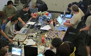 The team “Death From Above” works to solve puzzles. They placed 12th overall.