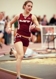 Madeleine E. Bairey ’15 rounds a curve during MIT’s first track meet of the indoor season Saturday afternoon. MIT easily defeated its opponents, finishing with 210 points against Bates College’s 88 and Colby College’s 80.