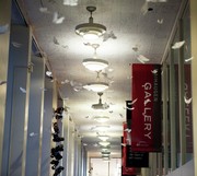The bibliodoptera exhibit has been installed in the corridor between the Lewis and Hayden Libraries for the MIT FAST Arts Festival. Designed by Elena N. Jessop G and Peter A. Torpey G, the butterflies in the display contain excerpts of sheet music, books, and MIT theses. The butterflies are lit up when visitors arrive.