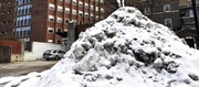 A pile of ice and snow along dorm row remains from one of the snowiest winters in recent memory.