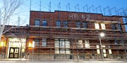 An HDR capture of W59 as seen at sunset. The building is newly adorned with scaffolding, and exterior work is being done. W59 currently houses the ROTC, Campus Dining, Housing, and Residential Life offices.