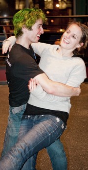 Aaron L. Scheinberg, a graduate student in Course 12, dances with a visiting scholar from Boston University at Wednesday night’s dance hosted by the Lindy Hop Society. Scheinberg says he enjoys swing dancing because of the momentum of the music.