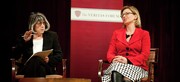Professor Rosalind W. Picard (right), founder and director of the Affective Computing Research Group and co-director of the Things That Think Consortium, responds to a statement by Professor Susan S. Silbey (left), a Leon and Anne Goldberg Professor of Humanities and Professor of Sociology and Anthropology at the Veritas forum this past Friday in Kresge. The forum was designed around the question “Will technology save the world?” and also featured Professor George Barbastathis and Professor José Gómez-Márquez.