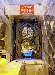 The neutral beam accelerator at the MIT Plasma Science and Fusion Center’s Alcator C-Mod tokamak. The laboratory, centered around the tokamak, or magnetically confined nuclear fusion device, faces significant cuts under the 2013 presidential budget request. The accelerator fires neutral particles into the plasma, resulting in an X-ray emission that can be used to visualize the plasma within and study its behavior.