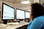 Roza Tesfaye, the power electronics engineer at Alcator, works at her station in the control room.