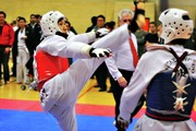 Maksim Stepanenko ’12 throws a head kick while competing in the Men’s B Team division at the Eastern Collegiate Taekwondo Conference.