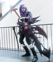 A con-goer cosplays as Nightmare from Soul Calibur.