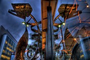 This was taken at Legal Seafood at sunset. I nearly missed the reflection the first time around. The lack of warm colors in the sky provides a nice contrast to the incandescent lighting of the fish. At first, I thought the wind would ruin the long exposure picture, but instead the shaking of the trees just made the photo more surreal.