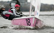 Andrew Z. Sommer ’13 and Stephanie Tong ’12 of the MIT sailing team face off against Roger Williams University in the first round of Saturday’s team racing double round-robin tournament. MIT placed 4th overall in the 30th Lynne Marchiando Trophy.