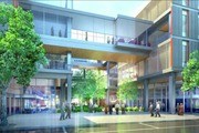 An example upper-floor building connection; such connections are encouraged for tenants needing over 35,000 square feet. They would be set back at least 35' from a street and would be at least 80 percent transparent.