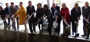 Architects Toshiko Mori and Maya Lin, center, break ground for Novartis’ new building at 181 Massachusetts Ave. The new building, on the former Analog Devices lot, should start to rise up in early 2013. To the right of Lin are outgoing City Manager Robert W. Healy, Cambridge Mayor Henrietta Davis, Massachusetts Governer Deval Patrick, and Novartis’ Mark Fishman.