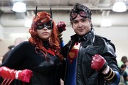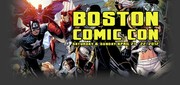 Two DC Comic cosplayers pose for a photo together in the hallways of Boston Comic-Con.