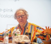 Physics Professor Walter H. G. Lewin moderates the Science Trivia Challenge that took place in the Broad Institute on Wednesday night. Questions ranged from general science and engineering questions to identifying the beards of famous scientists.
