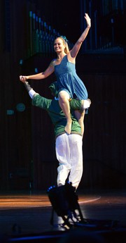 Eric Nielsen lifts Mandi Davis in a dance to music from the game The Legend of Zelda.