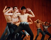Kevin Marume (center) and other brothers from PKT dance to a theme about becoming a man. Their choreography included songs such as “I’ll Make a Man Out of You” from Mulan and “Sexy and I Know It” by LMFAO. The event, held Sunday evening in Kresge, featured dancing, singing, and comedies performed by fraternities and sororities.