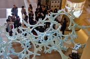 A structure was constructed from triangular styrofoam pieces in the lobby of building 7 on Thursday, and passers-by were invited to add new pieces to it. The project was part of the open house for prospective students in the Master of Architecture and Master of Science in Architecture Studies programs.