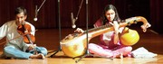 Members of MIT Swara perform at the Diwali Night celebrations held in Kresge on Sunday. The instrument pictured is the Veena, a plucked string instrument that is an essential component of India’s classical Carnatic music.