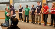 Emma L. Frank ’15 and Stephen D. Johnson ’15 perform during Roadkill Buffet’s “A Show of Hands” on Friday night.