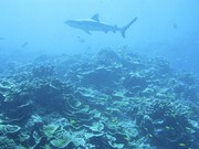A shark glides over the unspoiled reefs of Jarvis Island, an uninhabited island in the South Pacific administered by the United States Fish and Wildlife Service.
