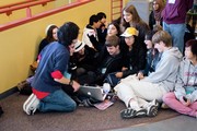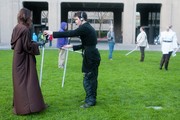 Evan Ehrenberg G, Katherine Karwoski ‘14, and Christine Labaza ‘14 lead a lightsaber dueling and stage combat class.
