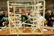 Team Rubicon X puts the finishing touches on their part of the larger chain reaction, which involved a cup holding a golf ball riding around the roller coaster.