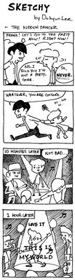 Nicholas A. Pellegrino ’12, a member of the break dance group Imobilare, performs in Lobby 7 during the blackout. Dancers from the group Constructs also performed. Many people, evacuated in the surrounding buildings, stayed in Lobby 7 during the blackout.