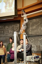 On Monday 2.12 (Introduction to Robotics) held a gymnastic robot competition. This is one of the robots that made up the competition: a high-bar robot.