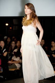 Samantha Q. Fomon ’15 models a dress designed by David Huang ’14.