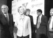 MIT and Harvard presidents Susan J. Hockfield and Drew Faust announce edX during a press conference on May 2. “We come together with conviction to say that online education is not an enemy of residential education, but rather a profoundly liberating and inspiring ally,” Hockfield said.