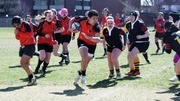 Kyra Horne ’15 runs the ball past two defenders during the women’s rugby game versus Wentworth Institute of Technology this past Saturday. MIT won 53-10.