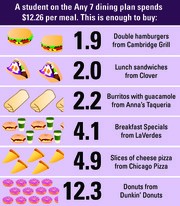 Members of the MIT community eat dinner in the Simmons Dining Hall.