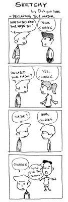 Allison M. Schneider (left) confronts Chris D. Smith ’13 and Emily K. Lydic ‘14 in Dramashop’s dark comedy, No Exit.