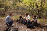 (From left) Writer and director Jeff Nichols, Jacob Lofland, Matthew McConaughey, and Tye Sheridan on the set of Mud.