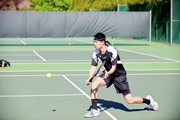 Edwin M. Zhang ’14 hits a volley in the third set of his match at the No. 1 singles spot on Wednesday afternoon. Both he and MIT lost to Tufts. This brings MIT’s overall record to 18-2. Zhang was just named the NEWMAC tennis Athlete of the Year.