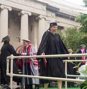 Chiquita White ’85, President of the MIT Alumni Association, led the procession into Killian Court holding the ceremonial mace.