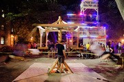 An East Campus resident operates the tilt-a-whirl ride at East Campus’ Sunday-night courtyard party. Attractions included a “frosh wash”, four-story fort, a swing set, a rotating rock wall, and a dance floor.