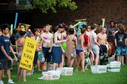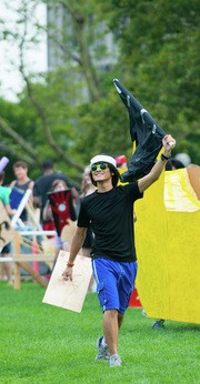 West Campus forces rally behind their wooden duck as they rush the forces from the East.