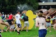 The war wages fiercely as both sides rush forward and begin throwing water in earnest.