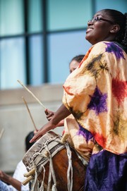 Rambax, MIT’s Senegalese Drum Ensemble, performs beneath bright blue skies reflected in the windows of the Student Center on Tuesday afternoon. The group was founded in 2001 and is co-directed by artist-in-residence Lamine Touré and the group’s faculty advisor Professor Patricia J. Tang.