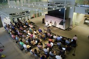 Joi Ito, director of the MIT Media Lab and Ethan Zuckerman, director of the MIT Center for Civic Media participated in a discussion on Thursday about the challenges of innovation within large structured organizations like big corporations and newspapers.