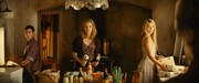 (Left to right) John D’Leo, Michelle Pfeiffer and Dianna Agron in The Family.